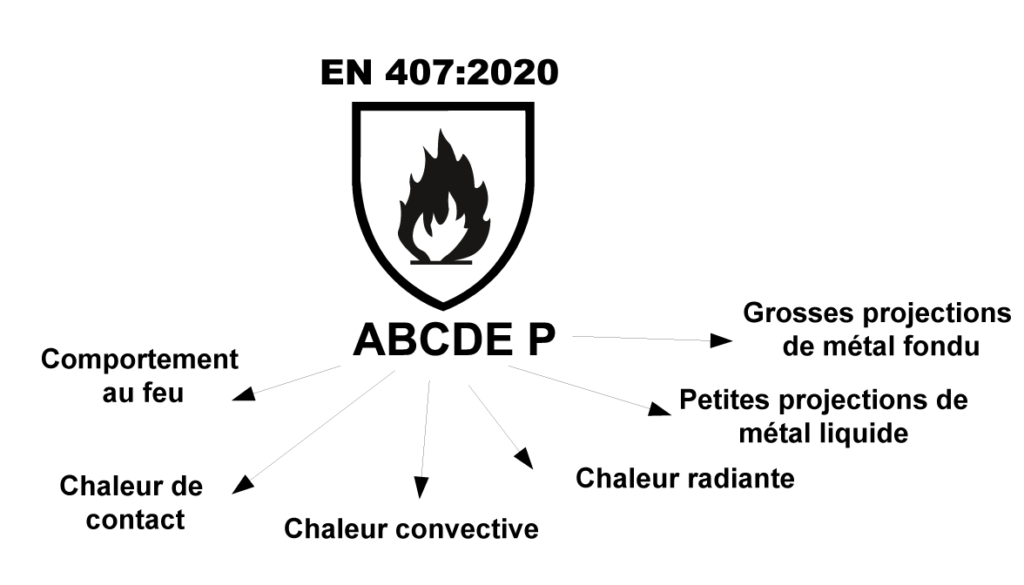 Grosses projections Masse (g) de métal en fusion pour provoquer une brulure superficielle | ≥ 30 | ≥ 60 | ≥ 120 | ≥ 200 |
